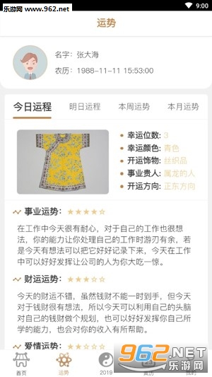 每天打开就能知道运势,包括今日的好运值、财富值和桃花运值;