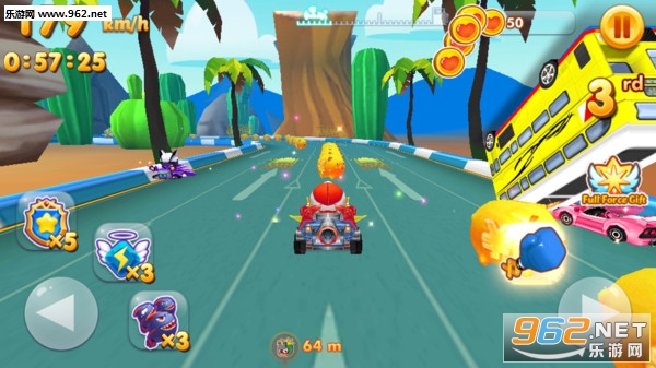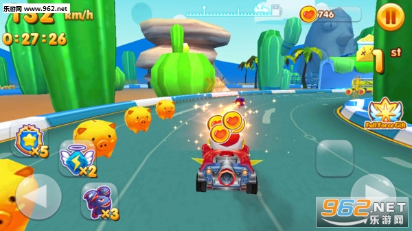 趣味卡通风格的卡丁车驾驶体验,开心宝贝系列全登场,和可爱的开心宝贝们一起飞车,体验不一样的乐趣;