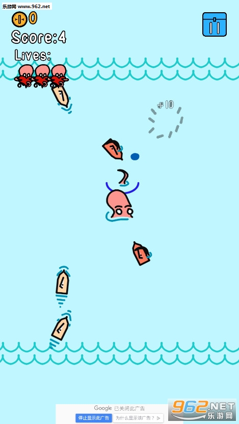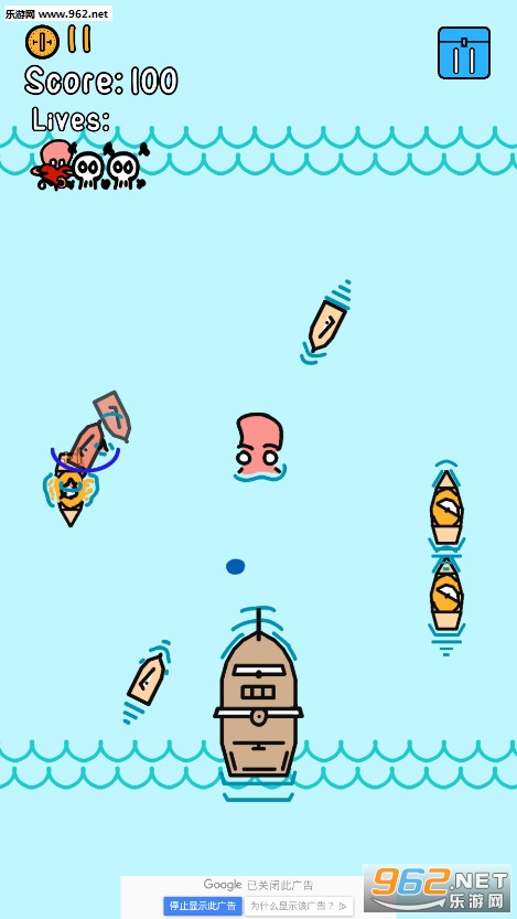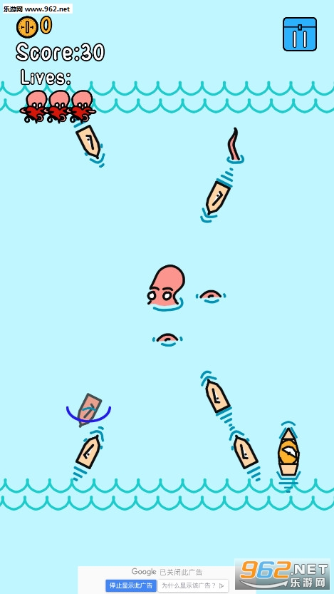 成群结队的敌舰在你的水域巡逻,你需要抓住小船,用它们砸碎大船,以此来控制你的触角!