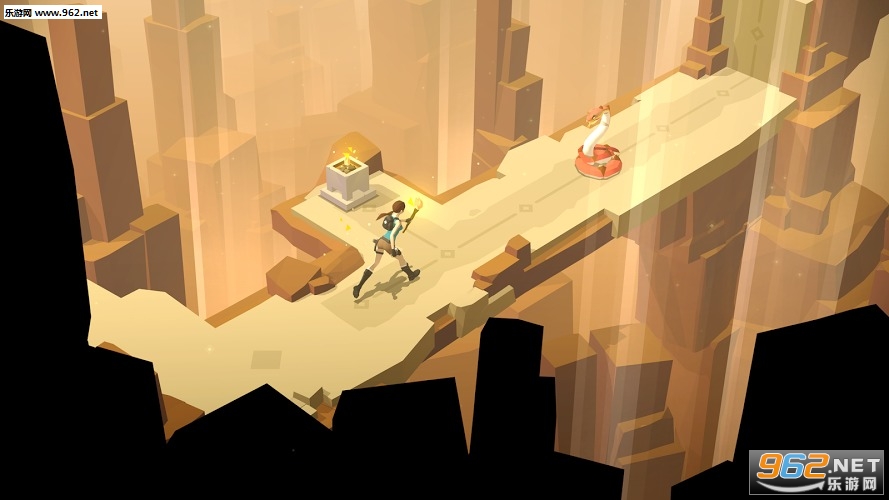 《劳拉 GO(Lara Croft GO)》是由SE出品的《古墓丽影》系列衍生解谜作品,本作以独特的低多边形美术风格重新诠释了传奇女性--劳拉的伟大冒险。游戏并没有采用该系列惯用的动作模式,而是将场景分隔为若干接点,玩家通过摇杆控制劳拉在节点之间移动、攀爬,直接点击画面中的物品、机关进行交互,解开设计巧妙的场景谜题的同时,收集隐藏在各个角落的宝藏,相信之前玩过《杀手 GO》的玩家能够迅速上手。游戏画面精美,角色动作流畅自然,书籍翻阅式的关卡切换方式,将玩家代入到整个新奇的冒险故事之中。