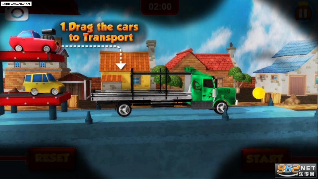 游戏操作非常简单,点击并拖动汽车放置到大卡车上,然后点击右下角的START开始。点击屏幕的左右来控制大卡车的前进和后退。