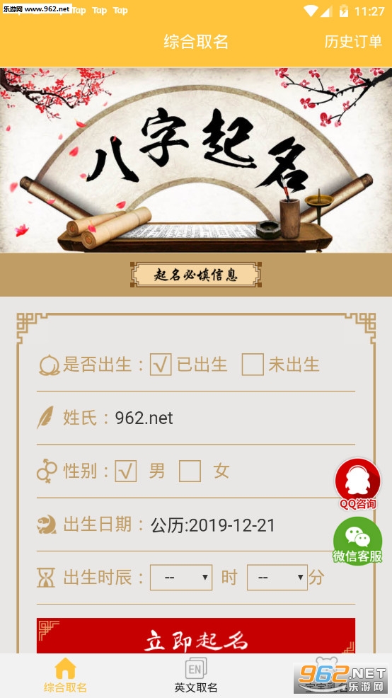 1.【免费起名】:根据新生儿出生时间,为婴幼儿、小孩