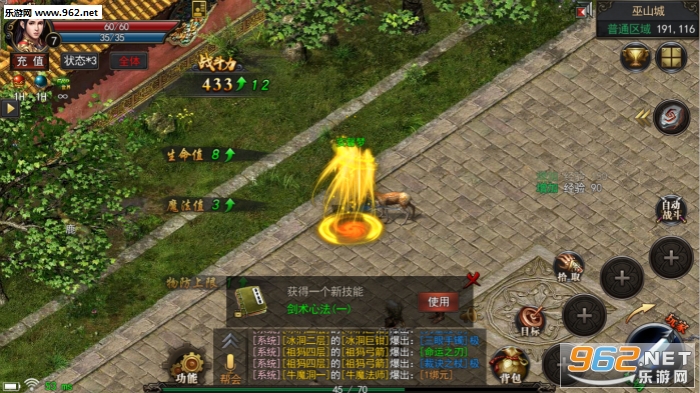2、上百种不同技能自由的选择学习,千人同屏竞技,满屏特效无比炫酷。