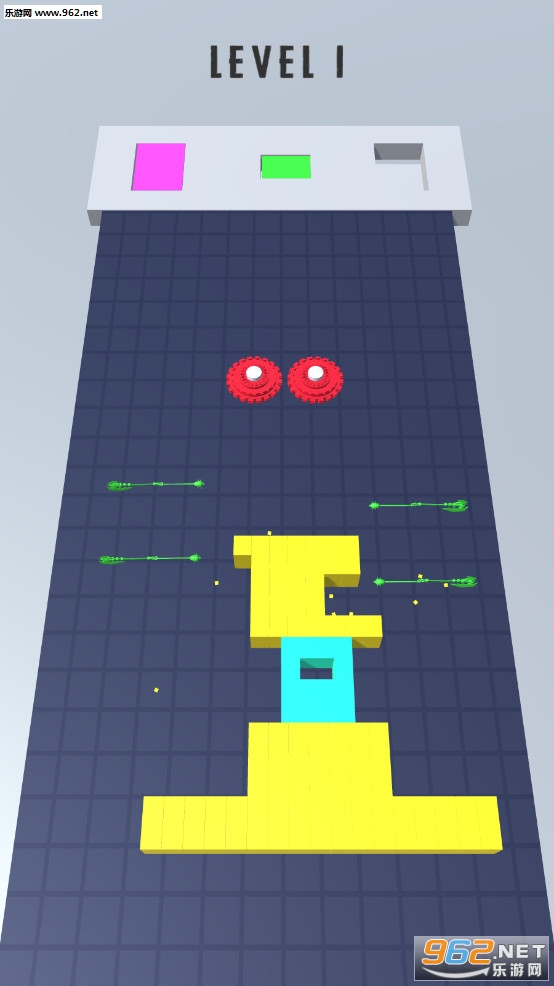 2、两种颜色的地砖分布于每一道关卡中,要精确的粉碎所有黄色地砖,蓝色的一个都不能动;