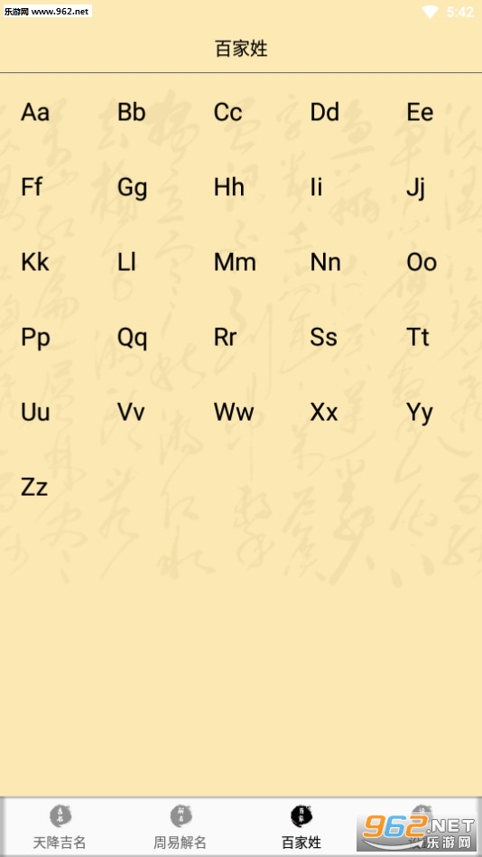 查看到百家姓氏,根据首字母即可查找;