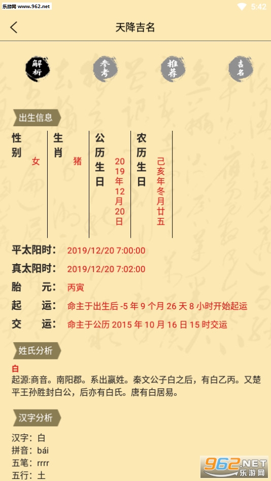提供了对于名字的解释,及时查看到名字的解析;