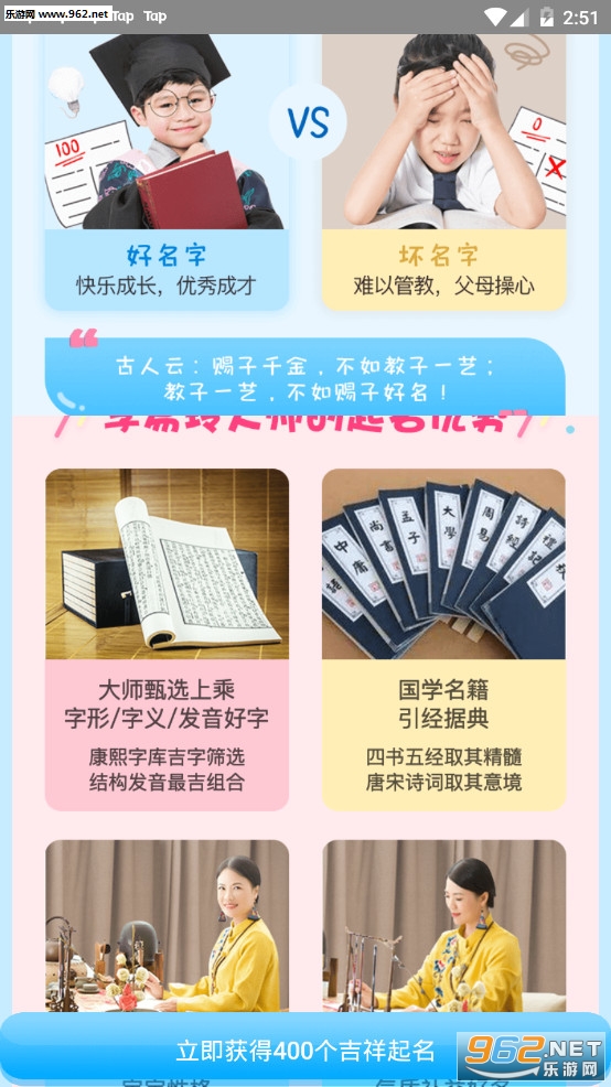 跟据传统文化周易八字四书五经等文学造诣,提前预知姓名对宝宝后天的影响;结合五行,汉字释义,诗词寓意,音律音调,字音字形等,让起个好名轻松简单;