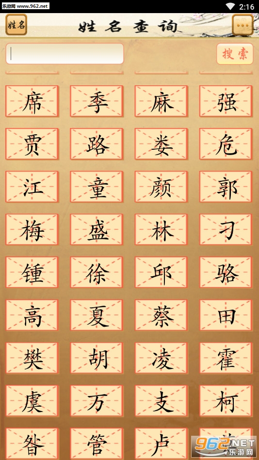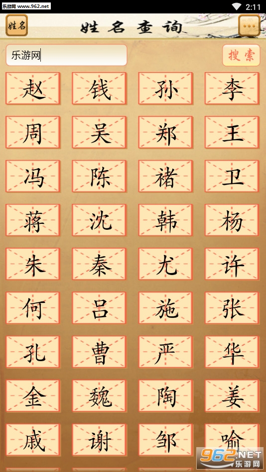 姓名查询操作简单,极易上手,输入您想查询的姓氏,软件会自动罗列推荐的名字,每个名字均有详细解释,供您选择。软件共收集百家姓各类名字上万例;凝聚了众多起名专家的集体智慧;列出大量名字的详细信息,便于读者自查,自用。
