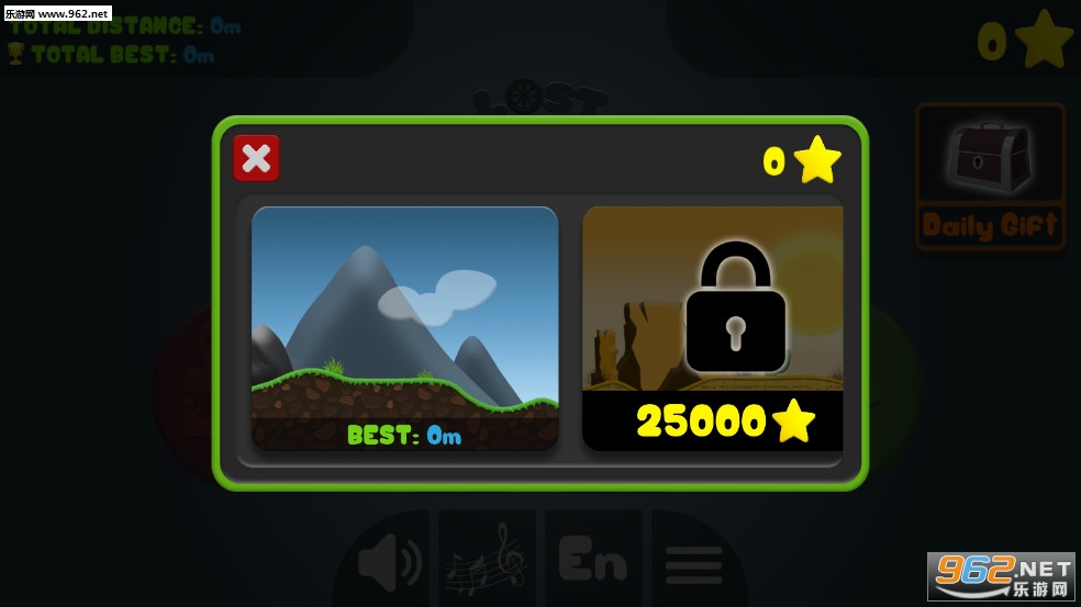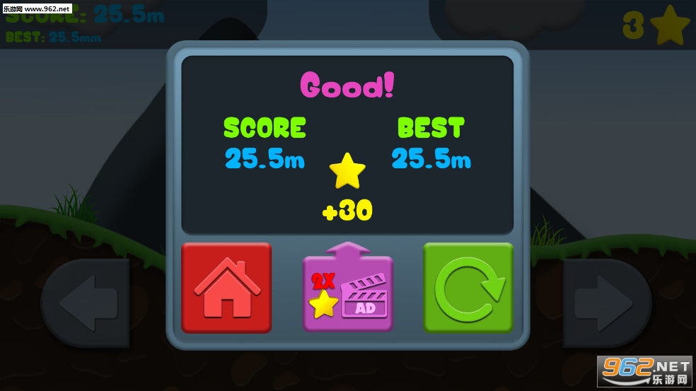 当自行车结束时,游戏结束,星星在行进的距离内获得;