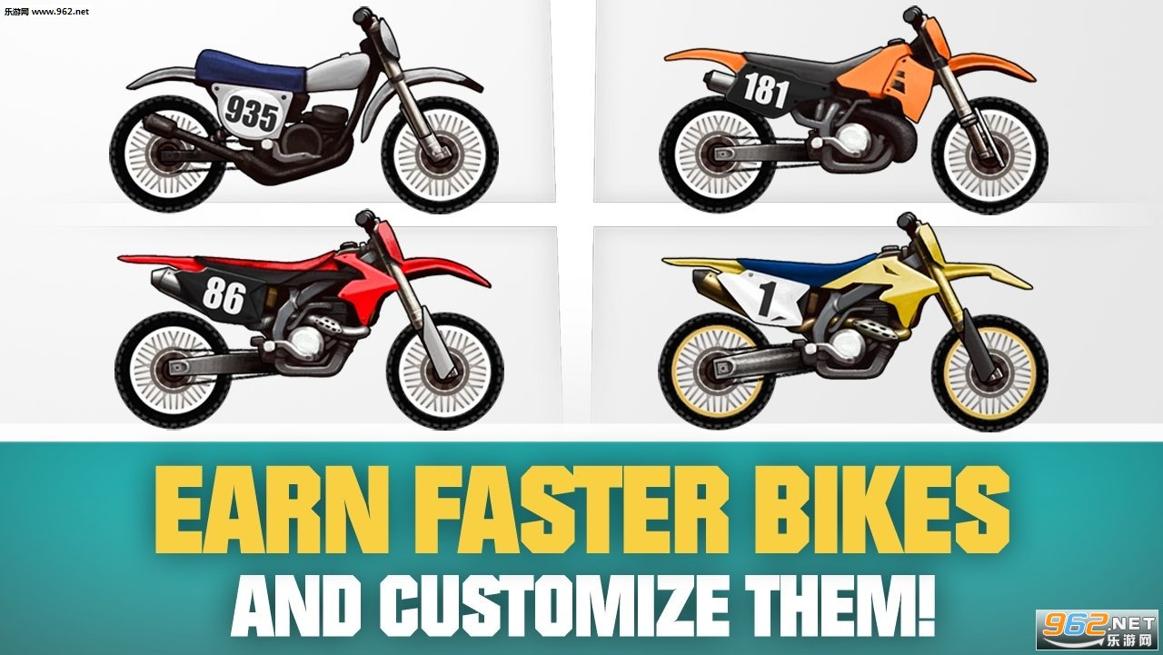 通过7种不同的机车,每一个不同的速度和处理您的方式工作。得到最快的自行车,主宰你的朋友!