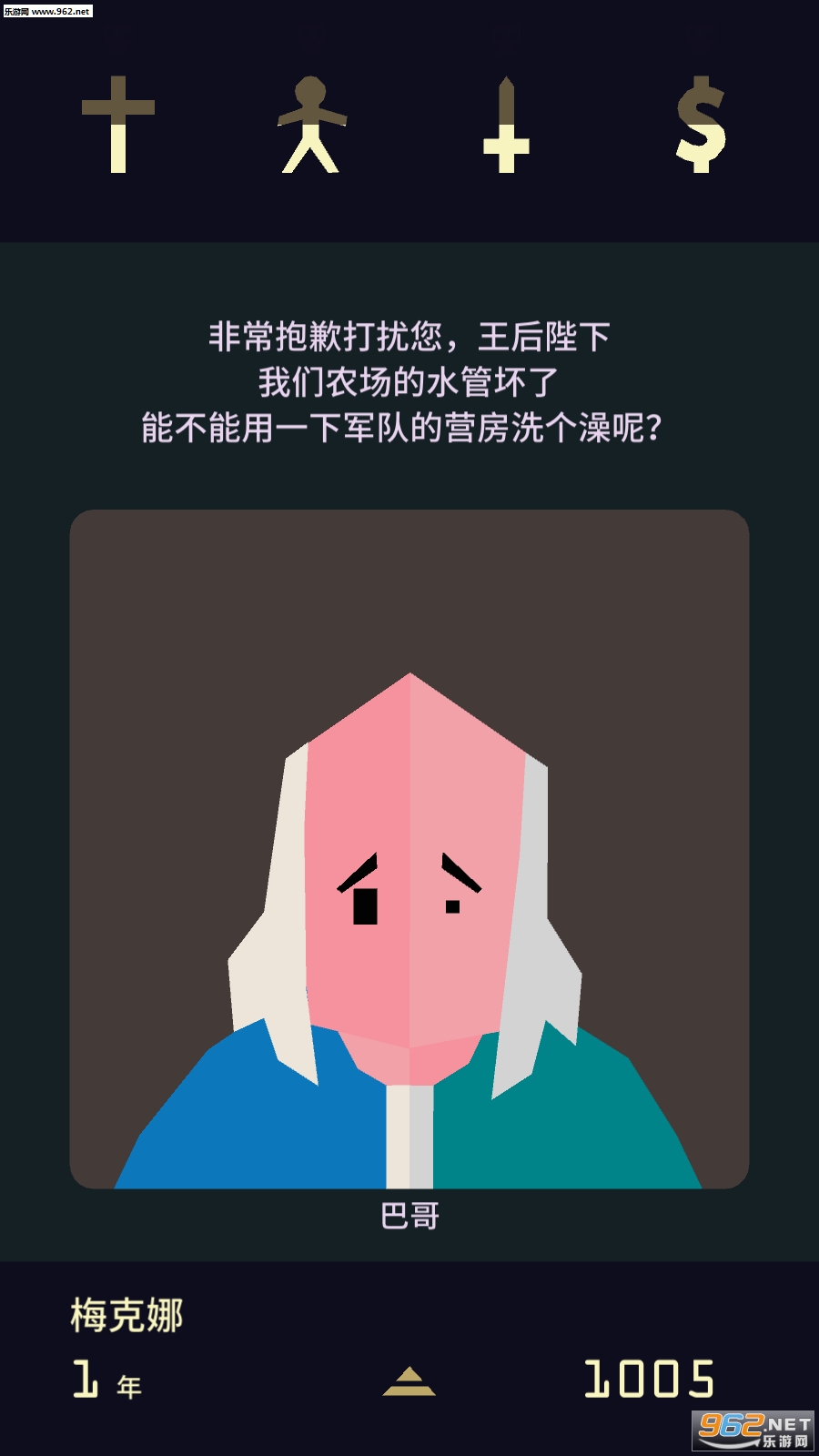王权2:女王陛下是一款创意趣味类卡牌游戏,由Devolver制作发行。本作中玩家将扮演一位女王,通过向左或向右滑动,拒绝或接受请求信使和臣民会向你觐见并提出要求,每一步的选择都关系着游戏结局的走向,只有平衡军队、人民、教堂、财富四种属性,才能使女王在宝座之上长盛不衰。