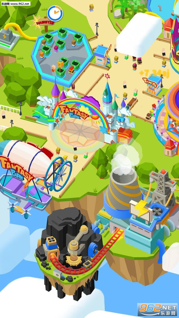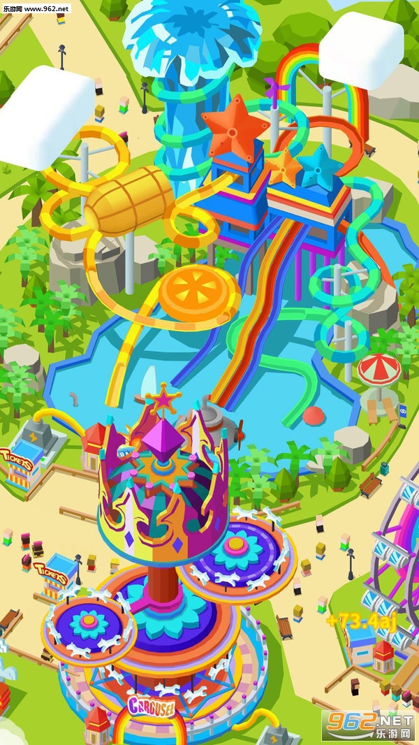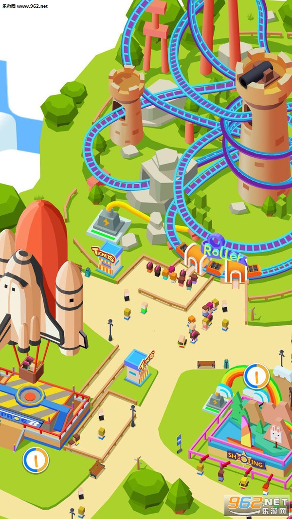 卡通的可爱色彩融入,轻松的放置玩法模式,不断扩大游乐园规模成为全世界最令人瞩目的游乐园大亨。