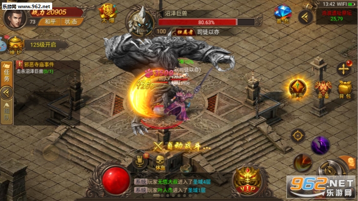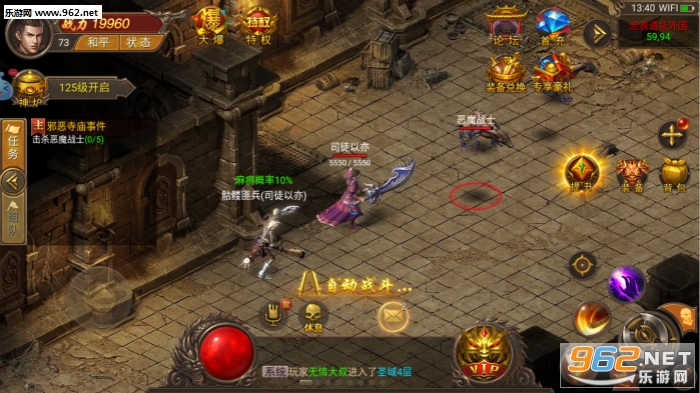 2、战士、道士、法师,多个职业的炫酷技能任你释放,相互配合还可打出超变态的组合技能;