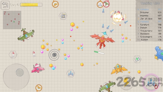 飞行战机大作战手游是一款好玩有趣的飞行对战手游,飞行战机大作战手游的游戏场景模式类似于球球大作战,不过结合飞行战机添加了更多飞行射击、对战竞技元素,产生了更多可玩性,喜欢的小伙伴就来2265安卓网下载吧!