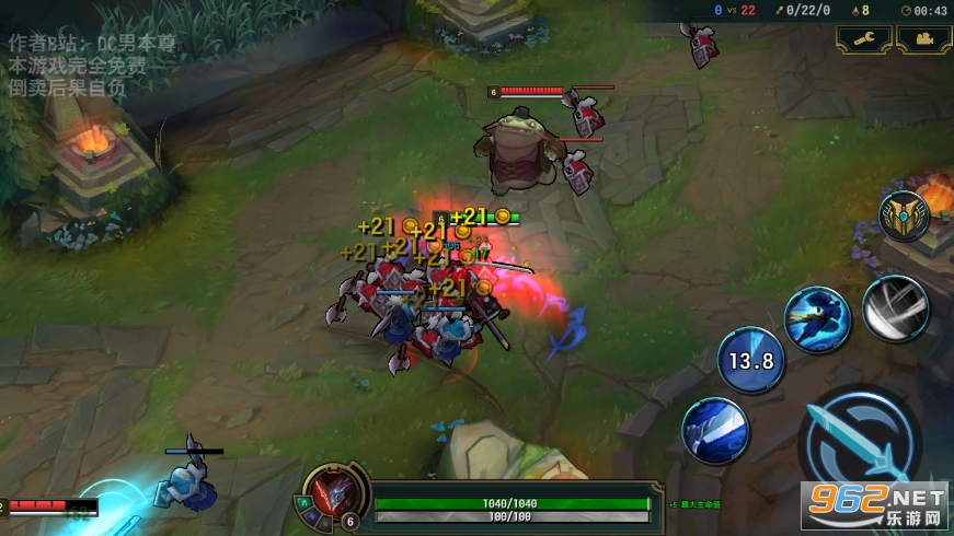 由B战的大佬DC男本尊打造的手机版亚索模拟游戏,我们可以作为峡谷中的快乐风男在中路开始最有趣的E兵之旅,技能都是没有CD的,可以让你的快乐得到无限的释放。