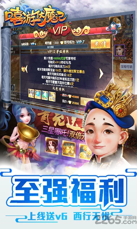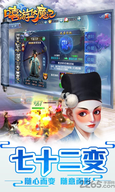 嘻游伏魔记最新手机版是一款西游题材的战斗卡牌策略手游,经典的西游角色供你选择,让你在西游世界体验全新的竞技对战玩法,精彩炫酷的技能pk,好友同游仙境,挑战副本进行boss对战,获得大量的宝箱进行材料收集,快来2265安卓网下载吧!