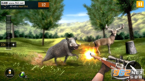 3、用狙击枪射击并杀死不同的动物,但是,要小心,你可能会成为被猎杀的猎物。