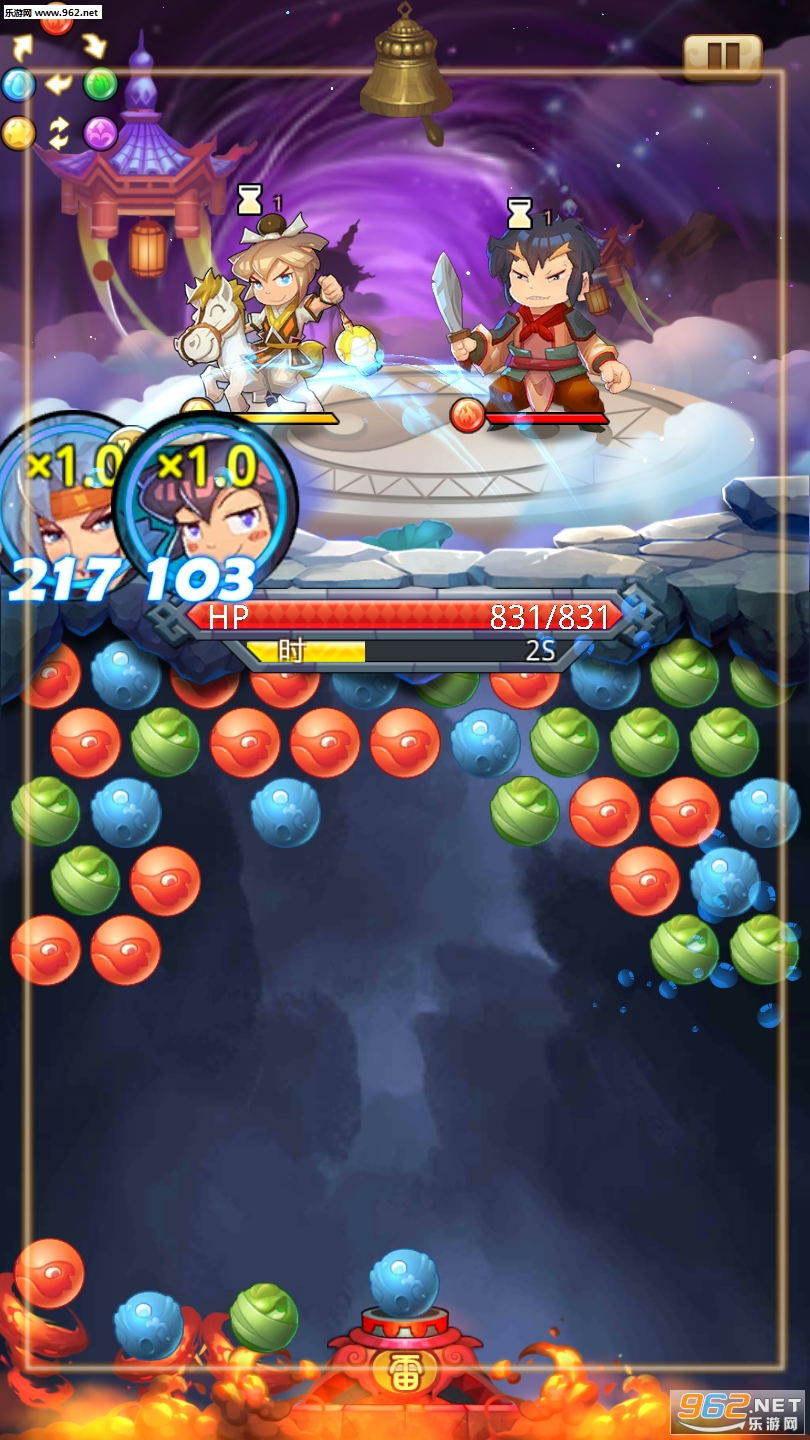 泡泡三国是一款以三国为主题背景的萌系回合制游戏,游戏的战斗方式采用的是经典的泡泡龙玩法,三个相同的球打在一起可以消除,每进行一次消除玩家将会获得一次进攻机会,在规定的时间内消除打出连击就可以更好的攻击对方。是一款玩法新颖,乐趣无穷的休闲游戏。