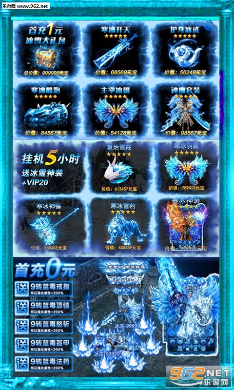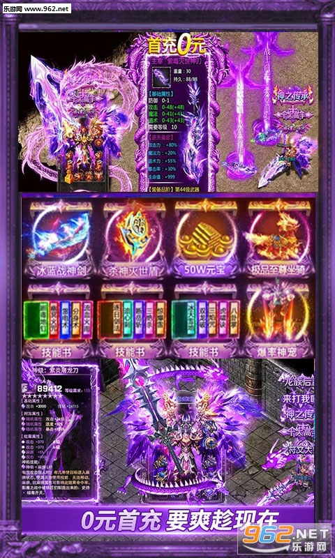 5.首充任意金额可得神兵利器!炫酷技能!开天神斩!火龙气焰!群体怨毒术!酷炫称号