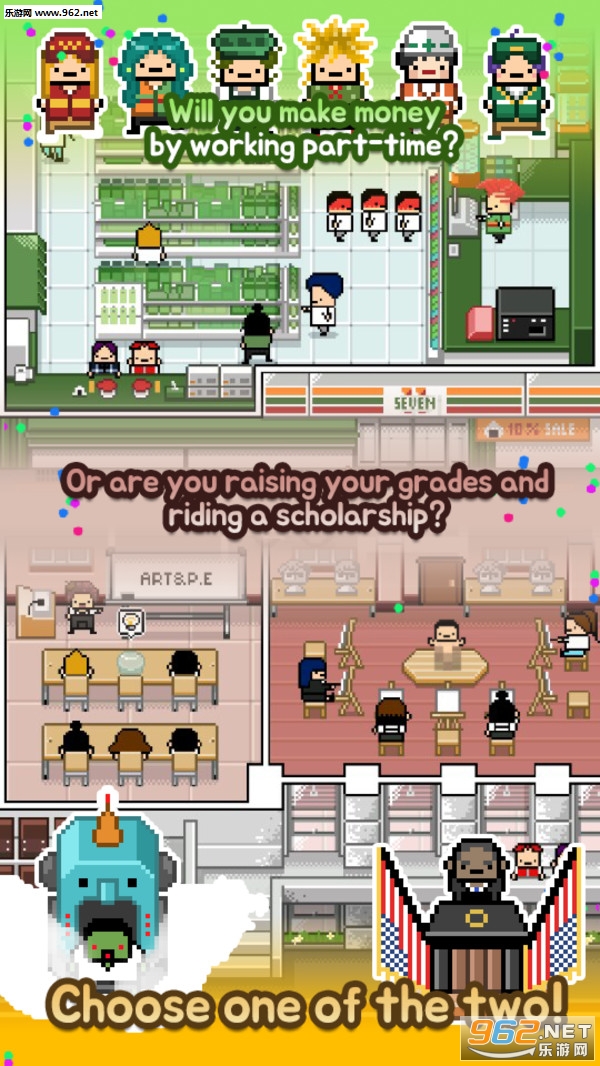 趣味十足的模拟游戏,做一个成功的学子还是荒废度日的人就看你自己的决定了,各种不同的结局等你解锁;