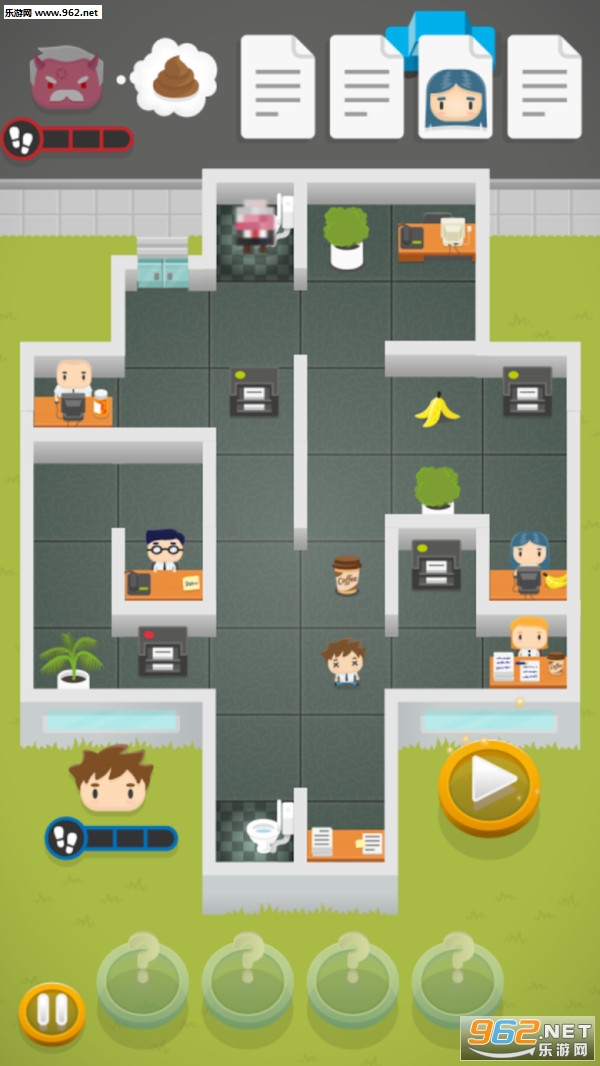 可以解压的轻松体验,玩法上难度不大,避开老板的视线来偷懒,游戏还会随着关卡而改变场景,乐趣十足。