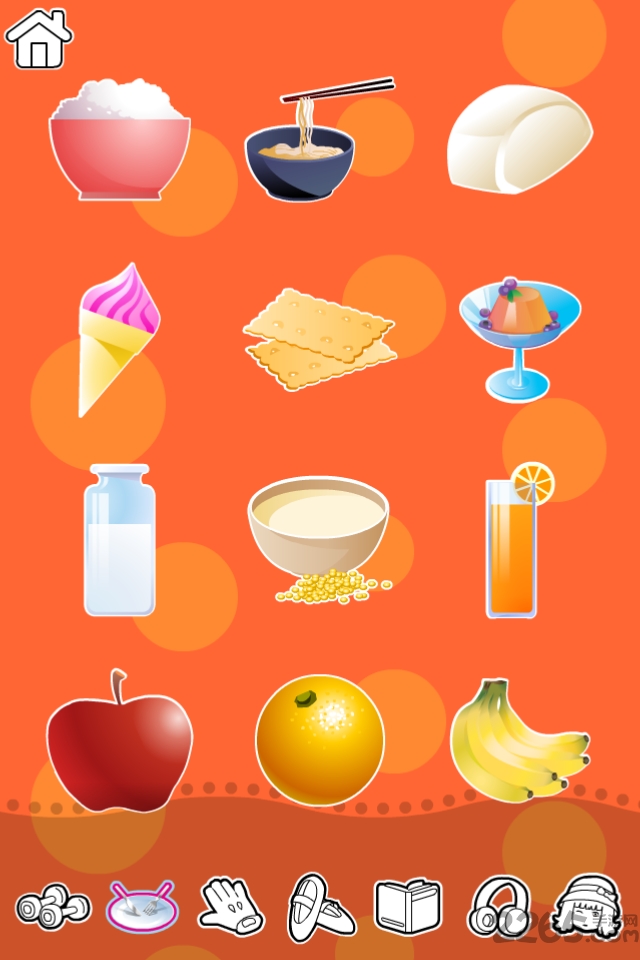 点击屏幕上的食物,水果,饼干,饮料,米饭,牛奶,就可以给娃娃喂食。