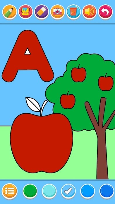 让宝宝快乐成长,大脑发展,身心更健康,宝宝更聪明。在宝宝的世界里,是个充满魔法的画画世界,在这里宝宝们可以自由的涂画,发挥自己的想象力,领略到色彩的魅力。为每张图案提供一个英语单词的标准读音,让宝宝可以画画的时候学习英语单词。