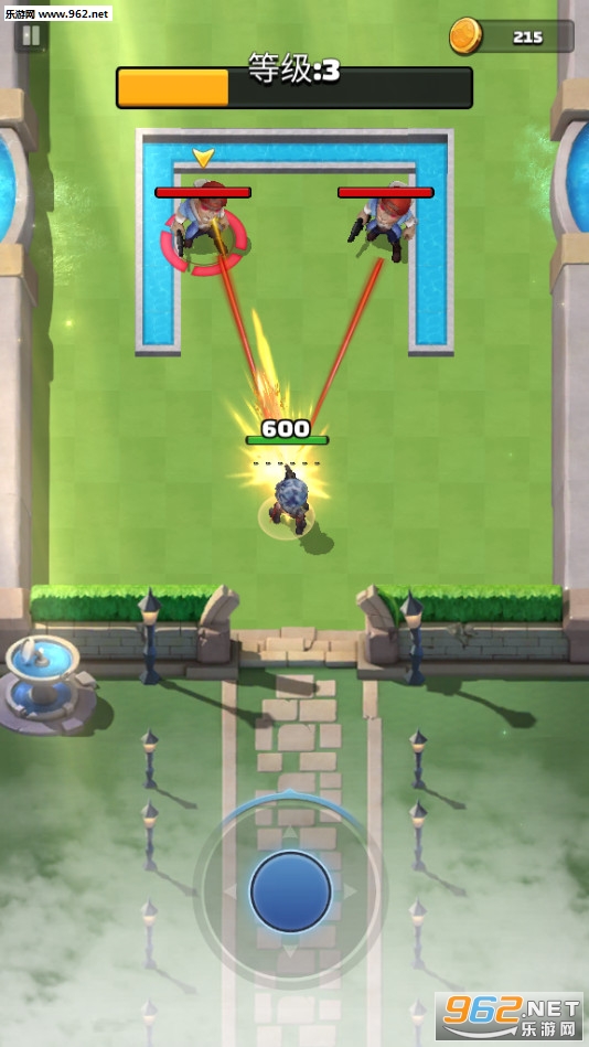 单指操作:采用了当下最热门的单手单指操作模式,按住操控虚拟摇杆移动,松开自动射击,让游戏上手简单,人人都能当走A怪。