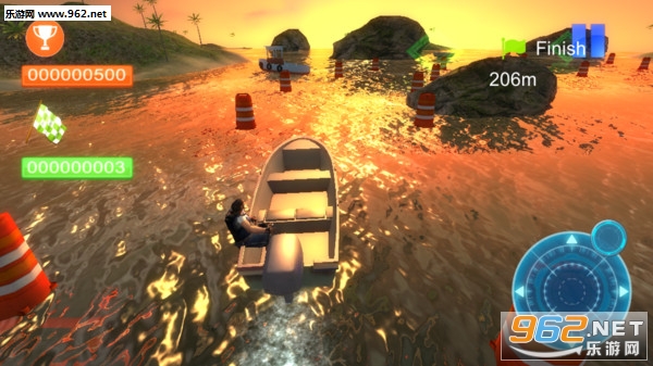 有种很真实的视觉画面感,在一望无垠的大海上尽情狂飙,驾驶你的快艇超越每一个对手,成为第一个到达目的地的人;