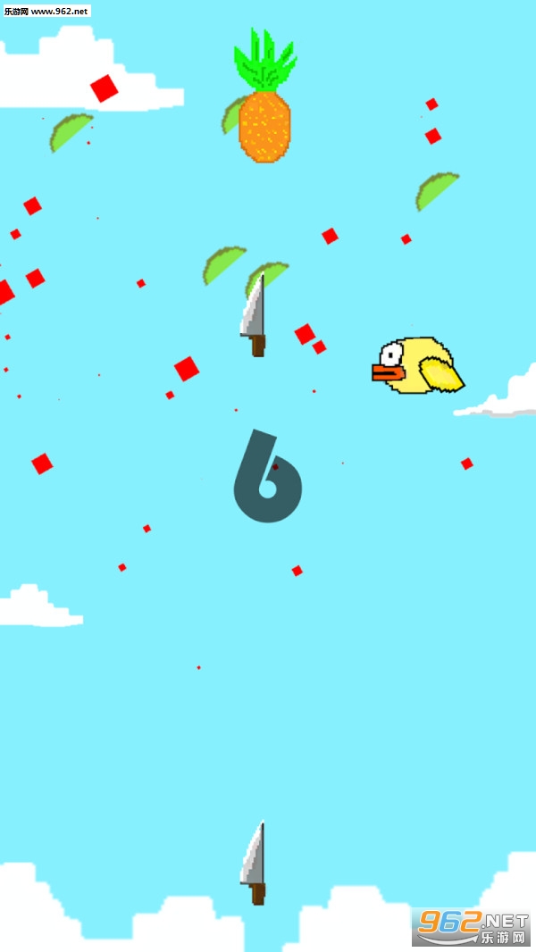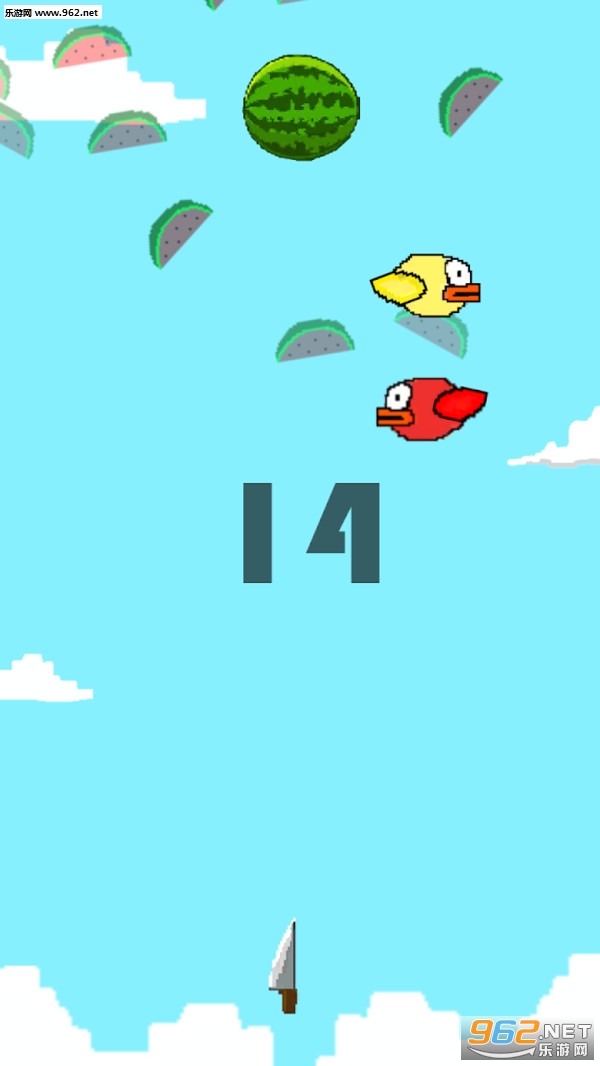 1、游戏场面很魔性,进游戏一看还以为是个切水果游戏,事实上它就是为了躲避小黄鸟就要切水果得分;