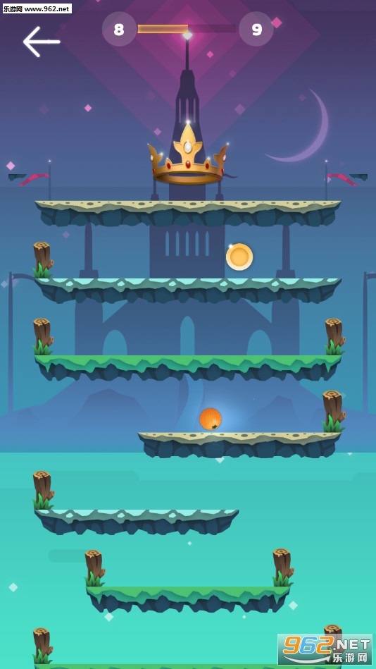趣味的跳跃冒险游戏,玩家需要敏捷的点击屏幕让小球跳跃在一个个平台上,到达顶峰后可以挑战下一个,掉下去了挑战就失败了。