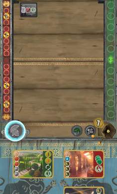 游戏版图分为两各区域,包括游戏的军事效果标记和可用的发展标记。两头的最后一个空间分别对应一名玩家。
