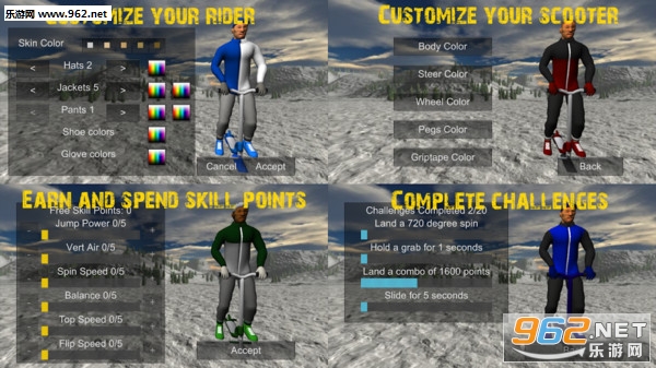 1、丰富多样的地图场景可供玩家选择,不同的场景带来不同的滑雪体验。