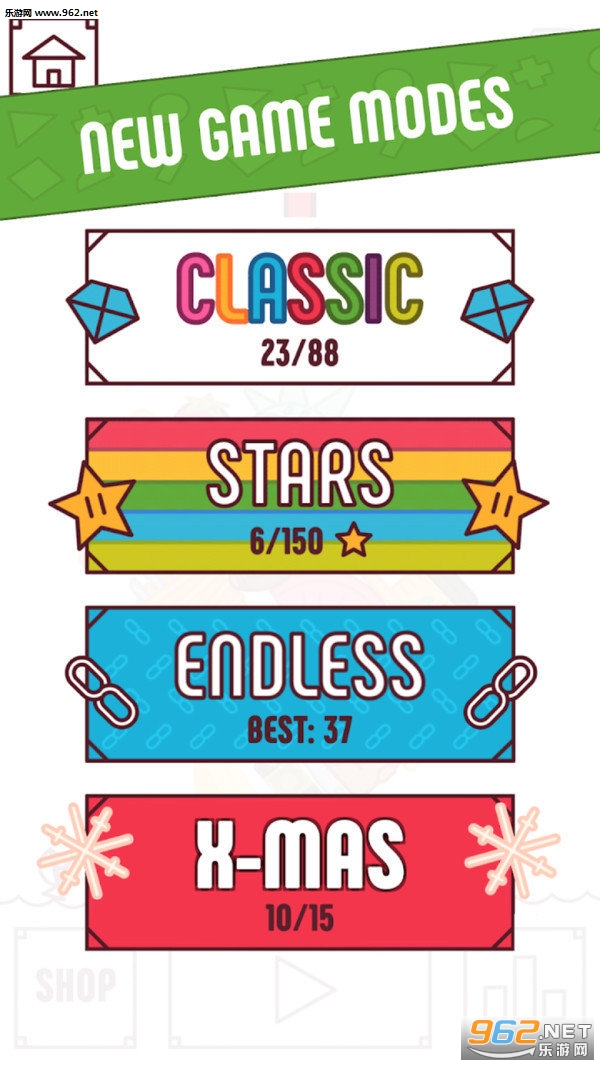 在游戏中有着4种不同的游戏模式(古典,明星,无止境的,圣诞节。