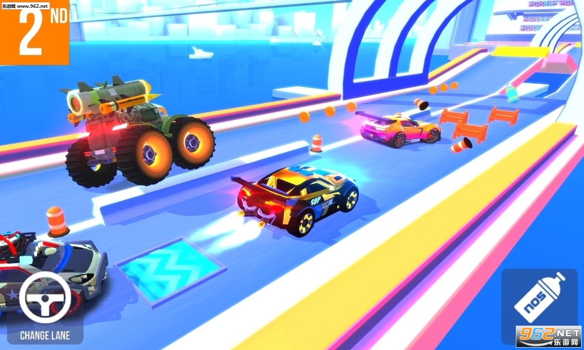 在游戏中玩家将进行SUP竞速驾驶,并经历加速、漂移、跳跃最终到达终点,以惊人的车速以及技巧赢得奖励,同时玩家还可以定制和升级你的车辆让你的车辆变得炫酷无比,并和朋友分享你的比赛成果。