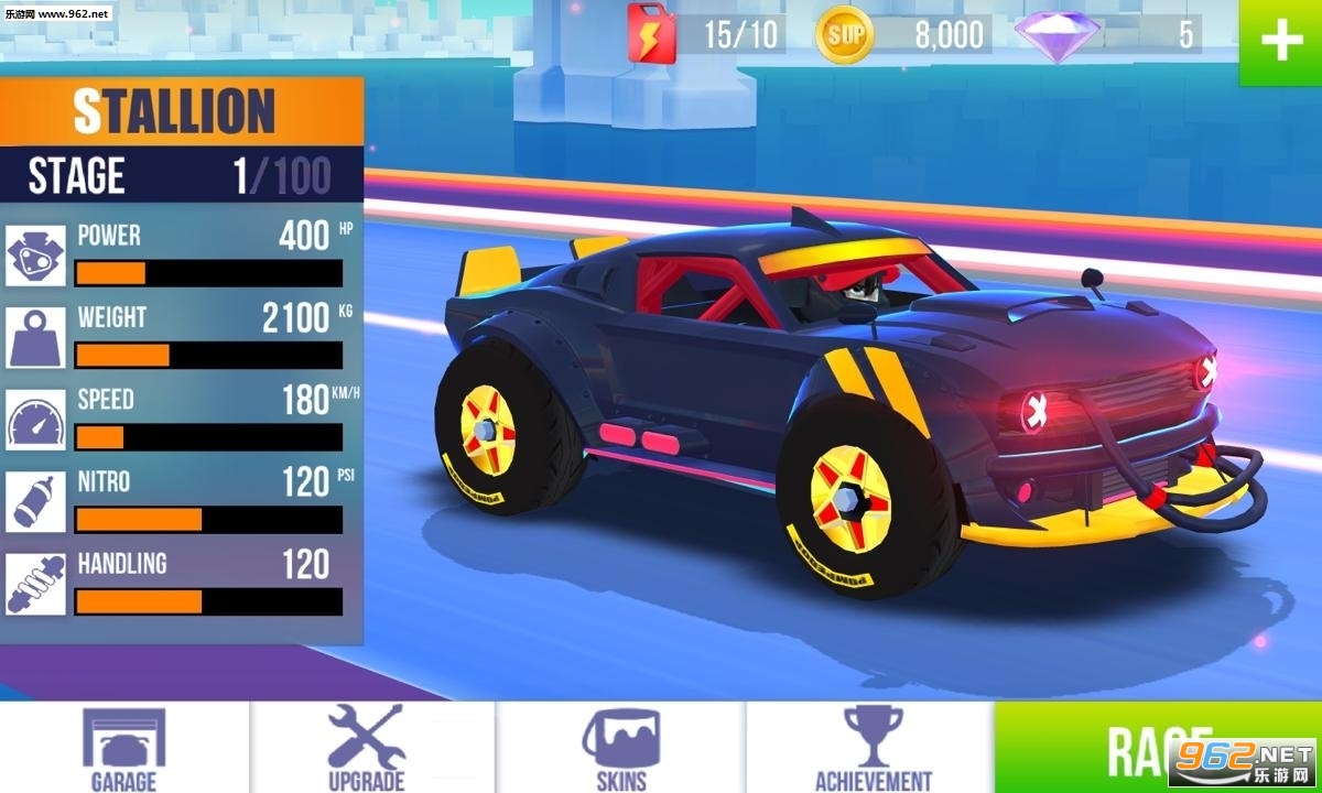 进化赛车,解锁更多强化属性(刹车、涡轮、轮胎等)