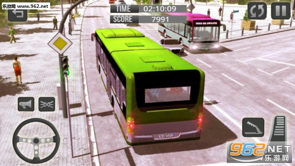 3、控制方向盘来操控公交车转弯,油门和刹车就可以让前进和后退更逼真。