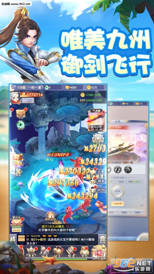 《九州江湖传官方版》是一款大型3d风格的古风玄幻仙侠游戏,超多职业可以让你选择,百变服装,装饰你的角色,让你的角色更加帅气,仙气,一出场就震撼全场,众多神兽萌宠等你来收集,带着它们一起去冒险吧。