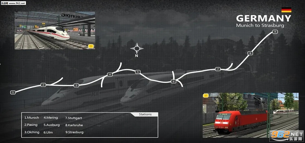 包括德国和法国的车站以及官方数据库许可列车,包括世界着名的ICE3,DB142和一系列货运列车。