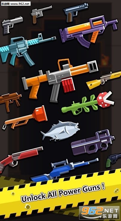 2、免费解锁数百支枪支,像素风格打造,各种奇葩造型,引爆笑点。
