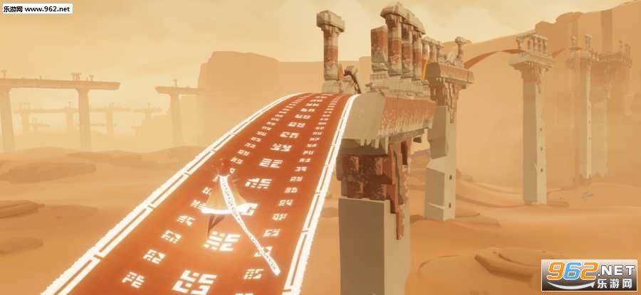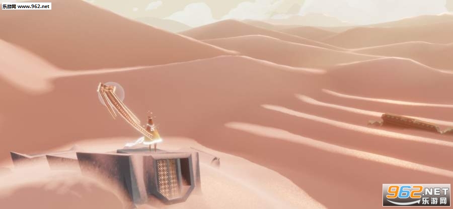 1、扮演一位徘徊在无尽沙海之中身披斗篷的无名旅者,戴着一条围巾,这是它的飞行秘密,角色可以跑、跳、打坐冥想,可以滑行,还可以短暂飞行,但无法攻击