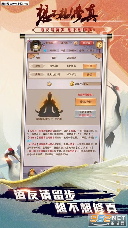 《想不想修真》是一款十分有趣的修真模拟手游,玩家将化身修仙之士踏上漫漫修仙长路,虽说你可以随心所欲地修炼,但在神秘的仙境之中,经常会有各种未知的状况发生,你必须灵活应对。喜欢的朋友欢迎下载体验!