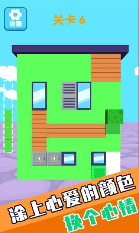 非常好玩有趣的一款涂色闯关类休闲手游,精美的游戏画风轻松有趣的涂色闯关玩法,非常的解压休闲,能为玩家们带来许许多多的轻松快乐,海量的游戏关卡等你来挑战,为一栋栋的房子全部都染上鲜艳的色彩吧。