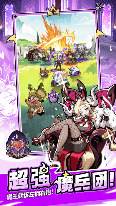 轻轻一点,升级变强!放置你的魔物兵团,让他们自动刷勇者升级。提升战力,轻松不累!