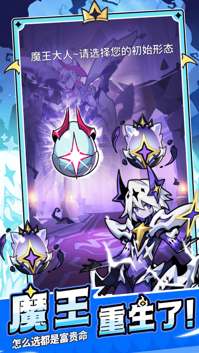 在你苏醒之后,魔物们都期待着再次归顺于你的领导!收集散落的魔蛋并孵化,你将获得一只随机属性的魔物,而稀有的闪亮变异魔物只有幸运魔王才有机会获得!