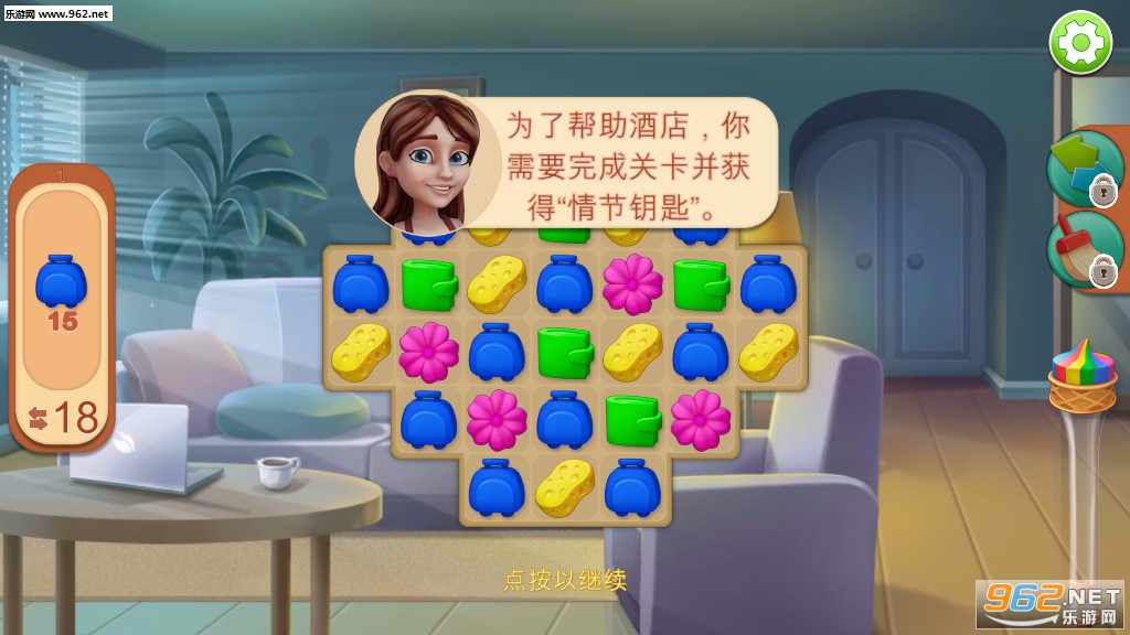 《度假酒店》是一款卡通清新风格的消除模拟经营游戏,游戏中玩家需要通过消除来改变度假酒店的风格,完成一个个有趣的关卡,感受温馨有趣的剧情,你可以将酒店改造成你喜欢的样子,游戏的玩法丰富有趣,赶快下载体验吧!