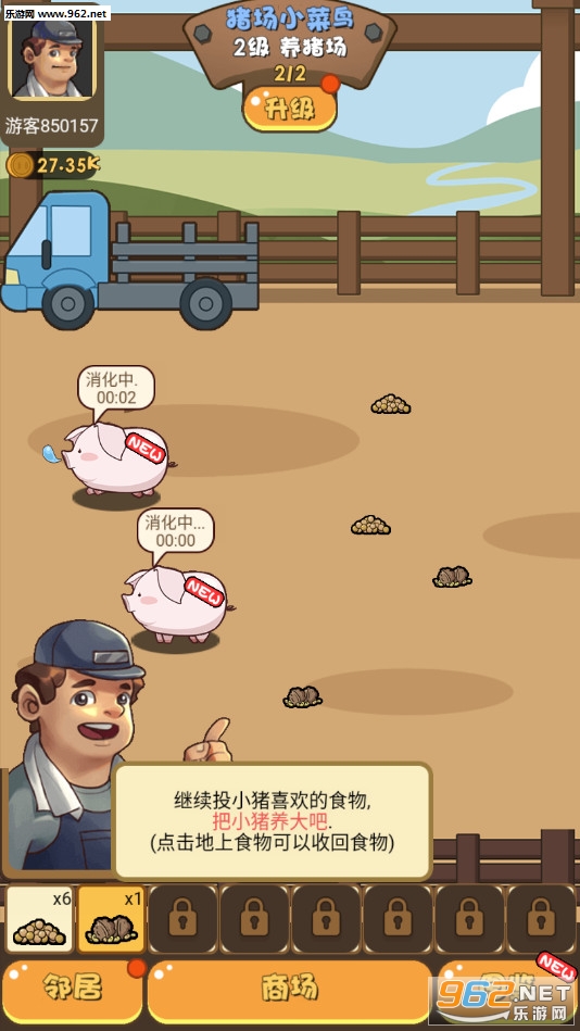 养猪题材的经营游戏,玩法简单,合并解锁更多品质的猪,猪的品质越高赚的钱也就越多,注意喂食和打扫卫生,赚取更多的钱成为养猪大亨。