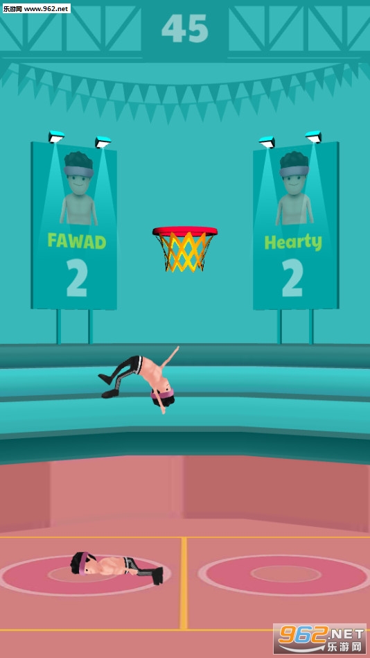 一款非常不错的休闲竞技游戏,游戏中玩家可以选择一名角色进行游戏,一开始我还纳闷呢,没有看见篮球在哪,结果是把自己当球跳入篮筐,游戏中你和你的对手之间也会发生碰撞,先拿到5分的人就可以获得胜利,推荐给喜欢休闲游戏的玩家。