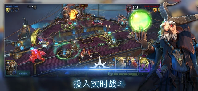 非常好玩的卡牌策略类手游,这款游戏是可以2D和3D之间随时切换的,普通的卡牌游戏是在一个平面平台上对战,而这个游戏会有一个非常逼真的战场供您对战,选出哪张卡牌,一个3D人物就会跳入战场为您作战!