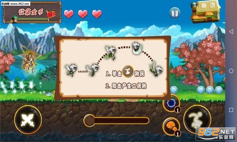 b.简单的操作模式,轻松点击屏幕,控制角色前进跳跃。